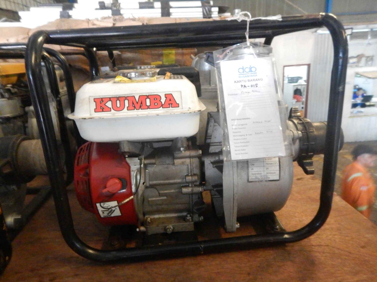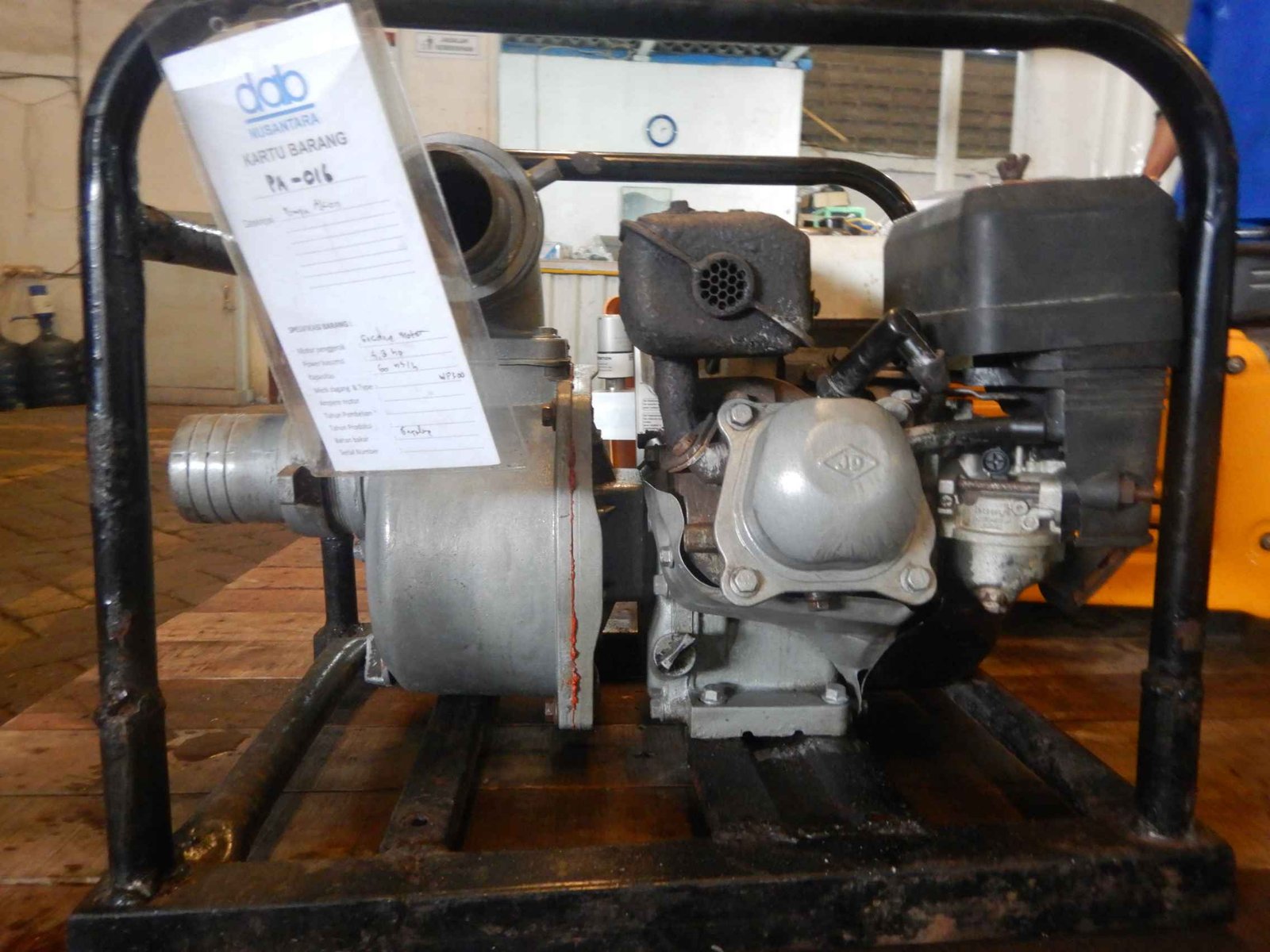 | 1099 | DABN-PA-008 | POMPA ALCON & POMPA BESAR | Merk / Model : Robin Narita Pump / RTG 300LH Max Head : 26 m Max Capacity : 1000 lt/min Revolution : 3600 rpm Power Required : 5 HP Suct & Del Pipi : 3" |